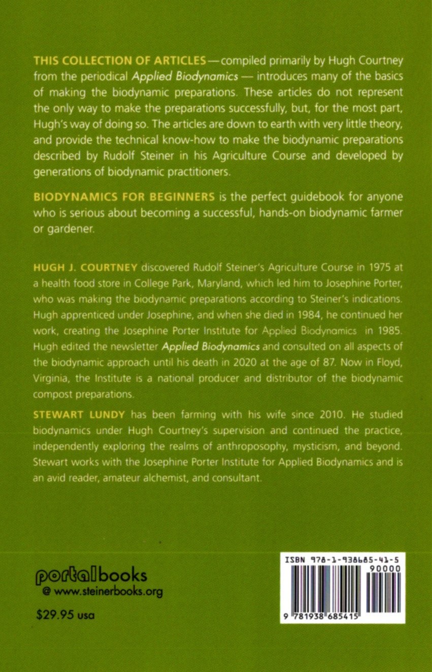 This collection of articles—compiled primarily by Hugh Courtney from the periodical Applied Biodynamics—introduces the basics of making the essential biodynamic preparations. What is discussed in these articles is much more than just ways to make preparations successfully; it also represents, for the most part, Hugh’s way of doing so with lots of practical tips for success. The articles are down to earth, literally, with very little theory, and provide the technical knowhow to make the biodynamic preparations described by Rudolf Steiner in his Agriculture Course and further developed ever since by several generations of biodynamic practitioners.