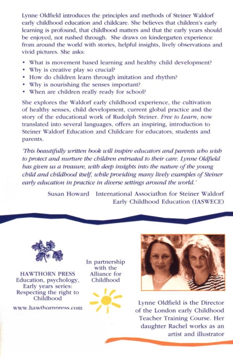 Faced with the stark reality that childhood is fast disappearing, Lynne Oldfield quietly convinces us that there is still hope: the richness and quality of the Waldorf early childhood experiences she evokes recreates and protects the lost world of childhood, but the benefits spill over, touching the lives of parents, educators and community alike. Vividly and sensitively written, this book has a powerful message for anyone concerned with the state of childhood today. —Dr. Helen Prochazka, Chairman, Montessori Education, UK