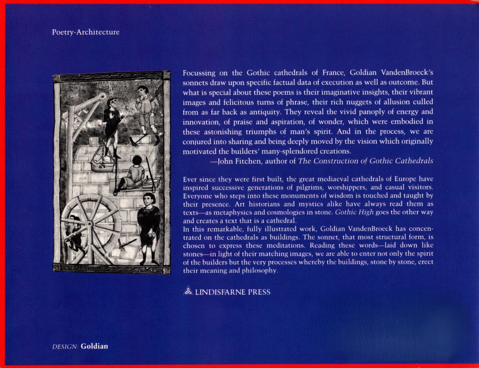 In this remarkable, fully illustrated work, Goldian VandenBroeck has concentrated her attention on the cathedrals as buildings. Reading these words–laid down like stones–in light of their matching images, we are able to enter not only the spirit of the builders, but also the very processes whereby the buildings, stone by stone, erect their meaning and philosophy.