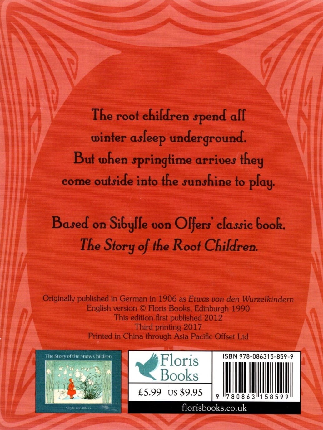 Sibylle von Olfers (1881–1916) was born Maria Regina Angela Hedwig Sibylla von Olfers in the Castle of Metgethen (Schloss Metgethen), near Königsberg. She grew up in a sheltered childhood and enjoyed, together with her brothers and sisters, education and teaching through governesses and private tutors. Sebylle became a German art teacher and nun and worked as an author and illustrator of children’s books. In 1906 she published her most well-known work, Etwas von den Wurzelkindern, translated into English as The Root Children. She used a blend of natural observation and simple design, which has led to comparisons with Kate Greenaway and Elsa Beskow.