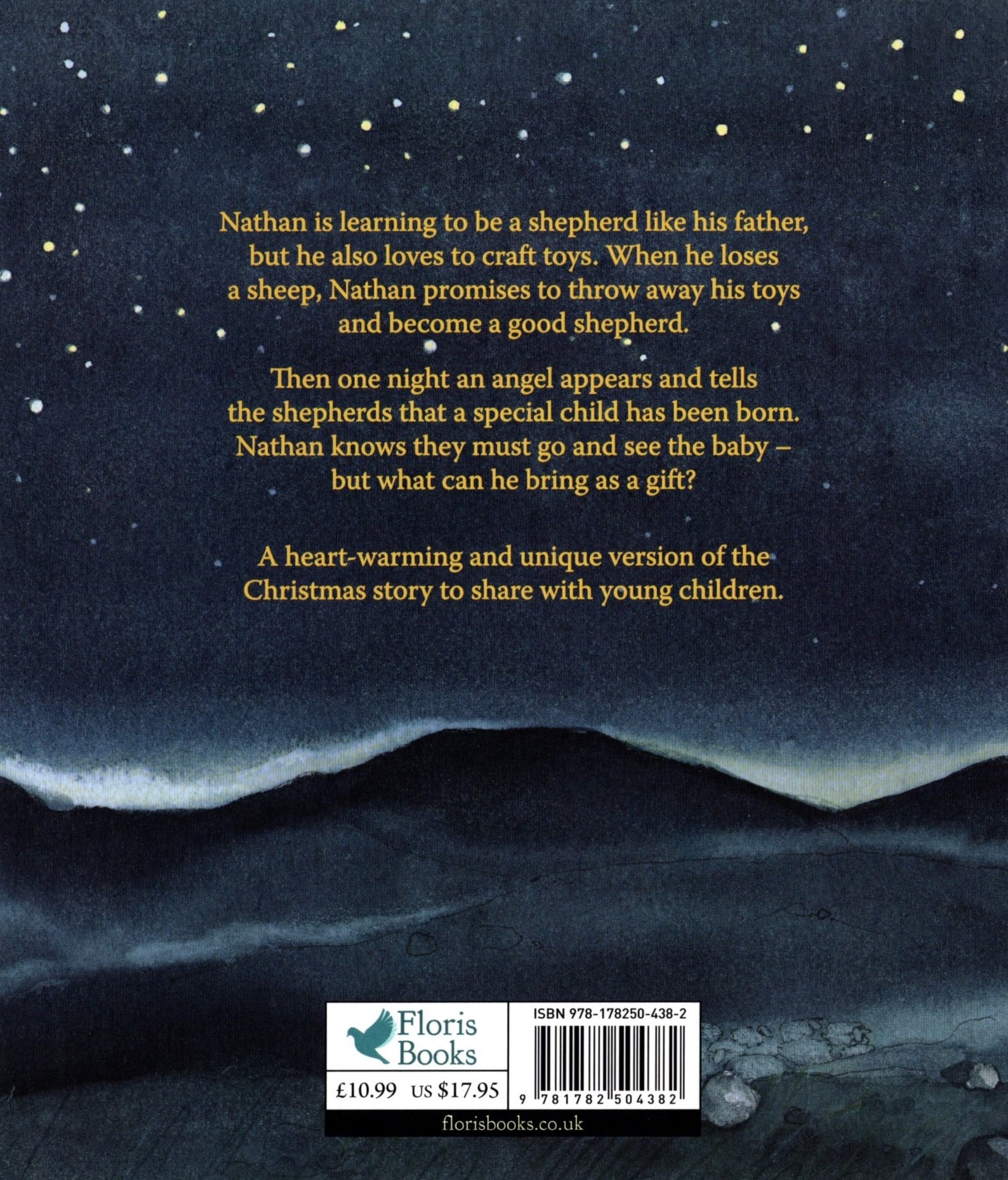 In this unique version of the nativity story, beautifully illustrated by Sanne Dufft, Nathan must give up his crafts to learn to be a good shepherd. But when an angel announces a special child has been born he has no gifts to bring him. What can Nathan do?